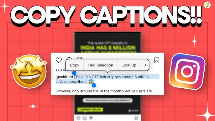 Android और iOS दोनों के लिए available है, जिससे आप एक tap में caption copy कर सकते हैं।